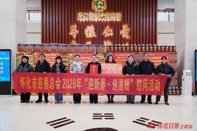 怀化日报全媒体讯1月30日上午,2026年“迎新春·送温暖”慰问活动爱心物资捐赠仪式在怀仁集团举行。湖南怀仁大健康产业集团有限公司向怀化市慈善总会捐赠总价值200790元的爱心物资,包括米、油各2070份。这批物资将分发至怀化市各县市区,惠及1035户困难家庭。